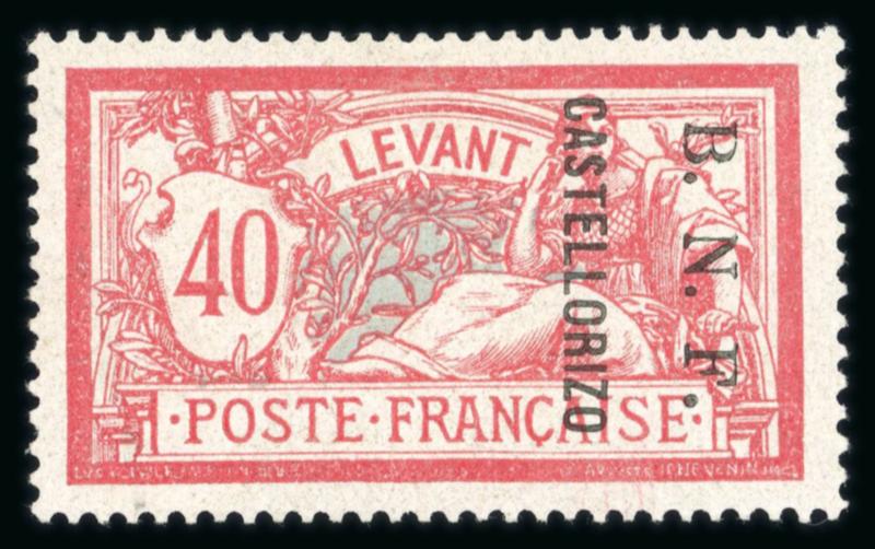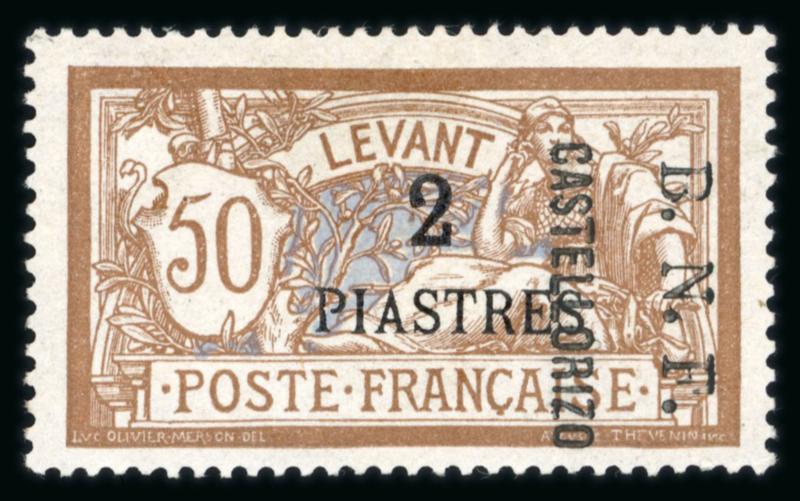 1920, très belle lettre entière de 1920 affranchie avec sept timbres précurseurs du Levant (Blanc, Mouchon, Merson) superbes frappes "Castellorizo Corps d'Occupation". Lettre ayant réellement voyagé, rare et TB. (Image)