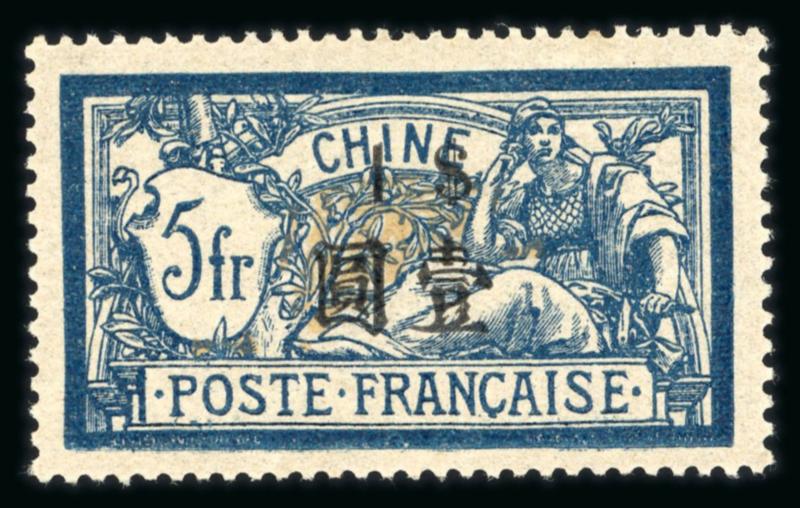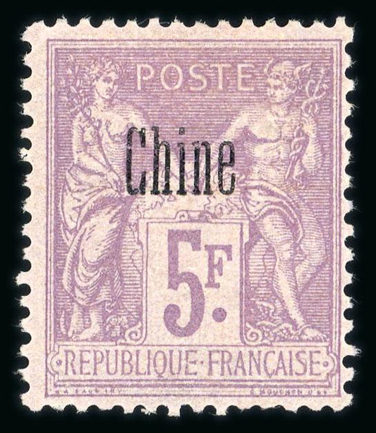 1901, Sage Y&T n° 22A, 25c surchargé, oblitéré sur petit fragment, très rare surcharge noire et très beau cad 21/04/1901 de Pekin, pièce que nous considérons comme un des plus beaux fleurons de la philatélie des Colonies Françaises, TB et signé Calves. (Image)