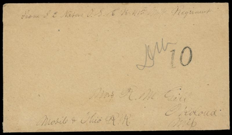 THE ONLY RECORDED CONFEDERATE MISSISSIPPI CENTRAL RAILROAD AGENT USE. US$500-750 (Image)