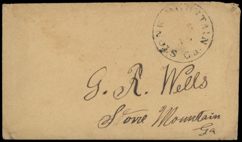 Stone Mountain Ga., Feb 15. Mostly clear cds on buff local drop cover without rating, original letter datelined "Stone Mountain Feb 14, 1861" with a Valentines Day love poem due to lack of cards; cover wear and reduced slightly at right, F.-V.F. and scarce valentines day drop rate, signed Kimbrough. Estimate; $150 - 200. US$150-200 (Image)