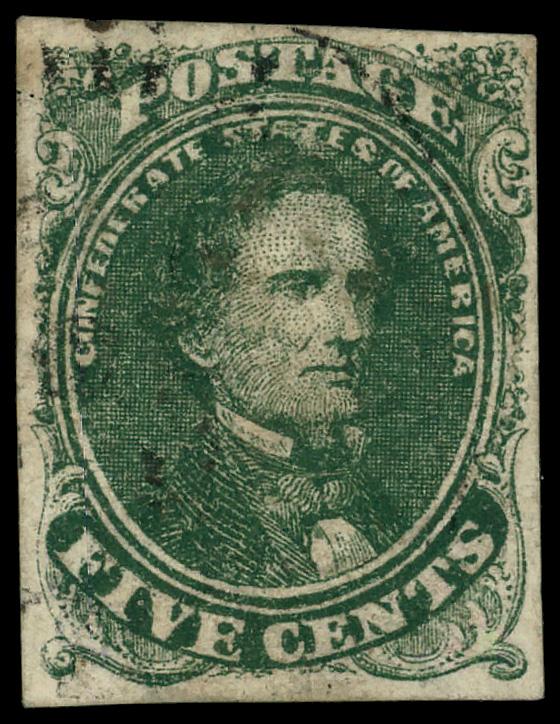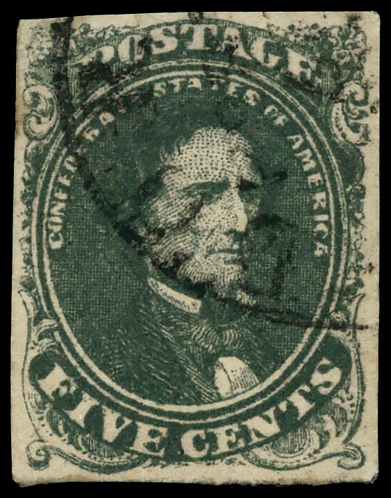 1861, 5¢ dark green (Scott 1b), Very Fine. Scott $250. (Image)