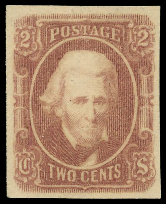 1863, 2¢ brown red (Scott 8), o.g., hinge remnants, Fine to Very Fine. Scott $75. (Image)