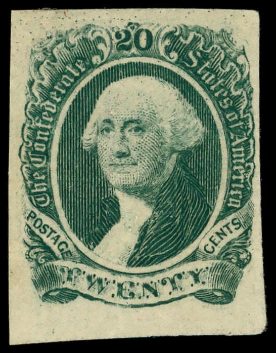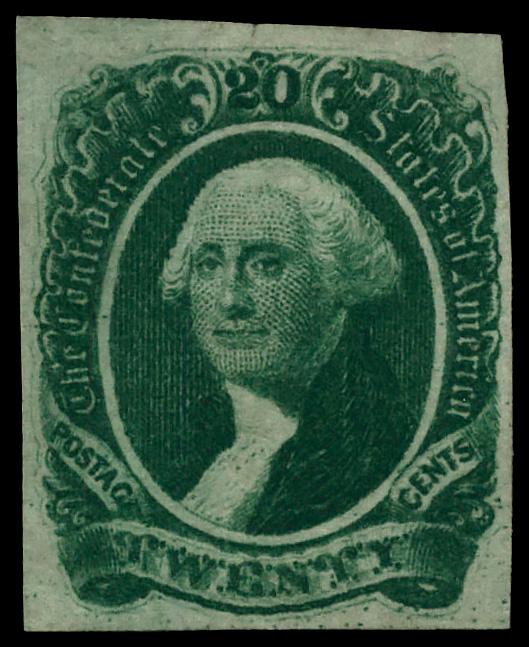 1863, 20¢ dark green (Scott 13b), unused without gum, Fine to Very Fine. Scott $65. (Image)
