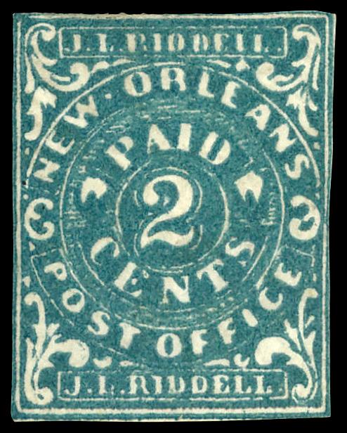 New Orleans, La., 1861, 2¢ blue (Scott 62X1), o.g., hinge remnant; small thins, Very Good. Scott $225. (Image)
