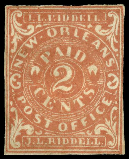 New Orleans, La., 1861, 2¢ red (Scott 62X2), nearly four margins, just barely cutting into right frame line, unused without gum, Very Good to Fine. Scott $190. (Image)