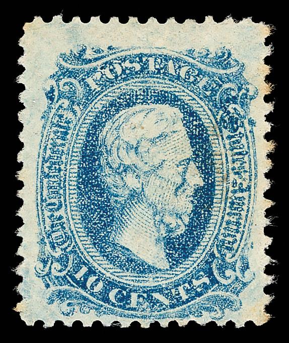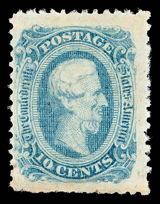 1863, 10¢ blue, officially perforated 12½ (Scott 12f), part o.g., with clear detail in attractive color; perforation faults at bottom, Fine, with 2020 P.S.E. certificate. Scott $450. (Image)