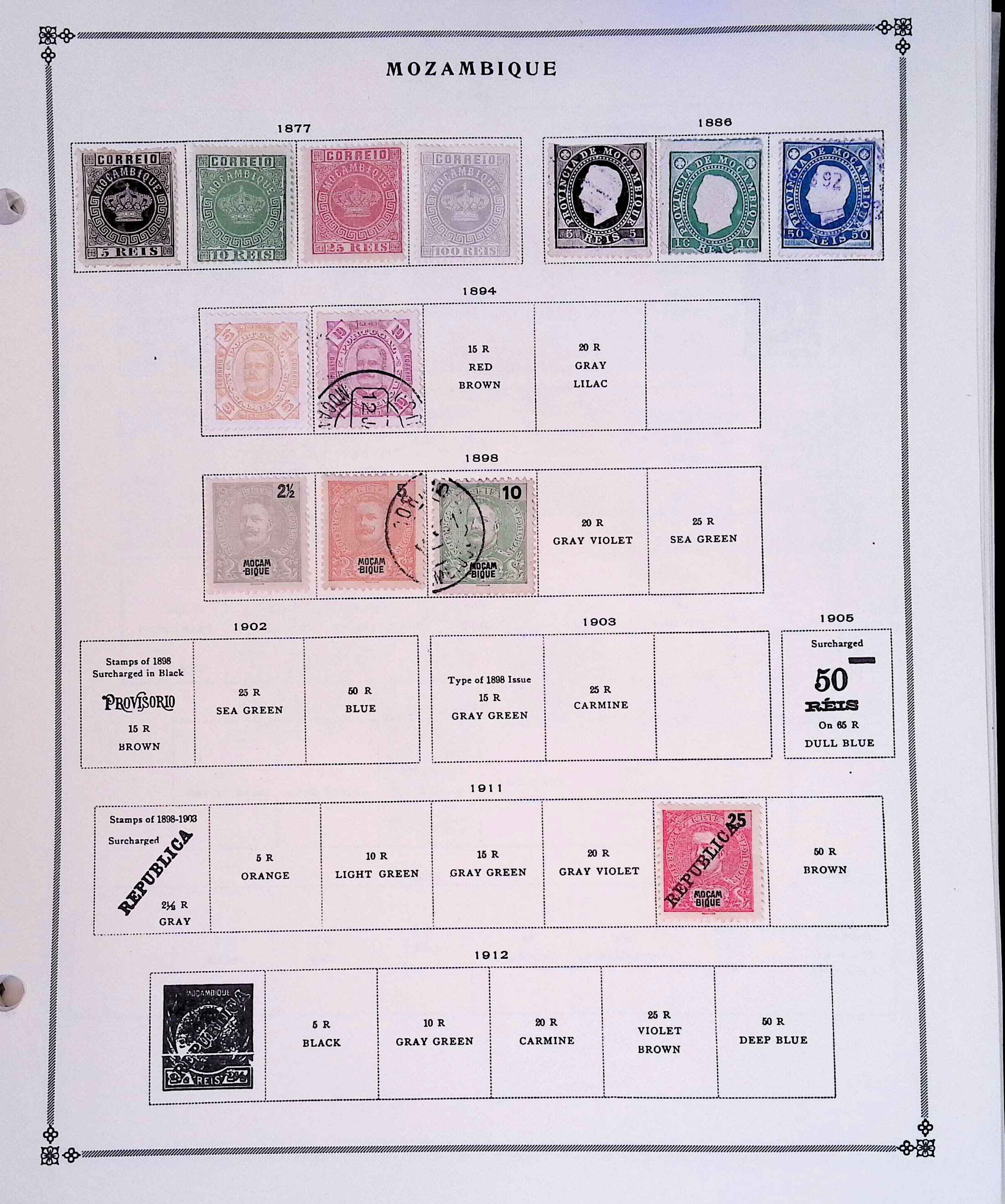 Mozambique and Mozambique Company. Starter Collection Lot made from 8 different Scott Internationals to 1940, one up to the 60s. We scanned 18 pages of mostly filled album pages but there is a lot more, plus many blank album pages - estimate $45-90. (Image1)