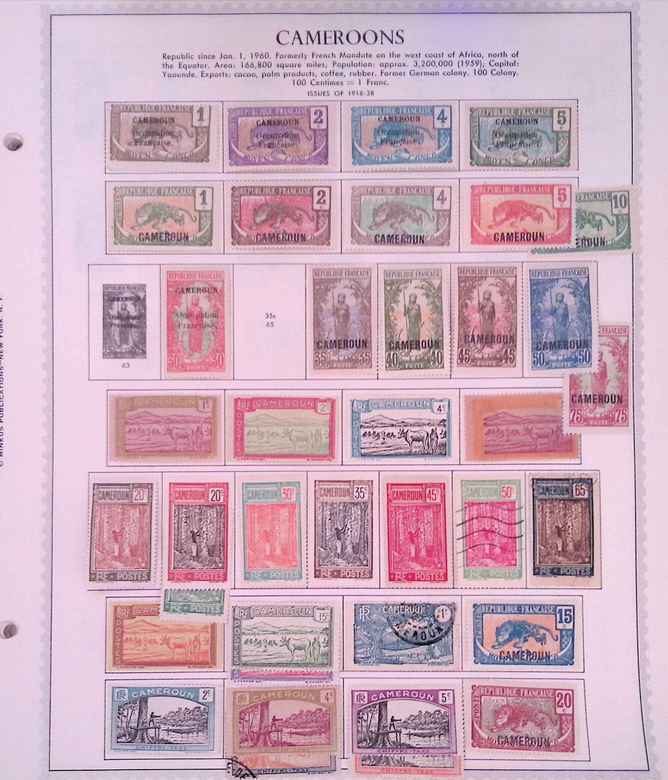 Cameroons. Starter Collection Lot made from Scott Internationals and Minkus Globals. 6+ mostly filled pages plus a few recent issues - estimate $10-20. (Image1)
