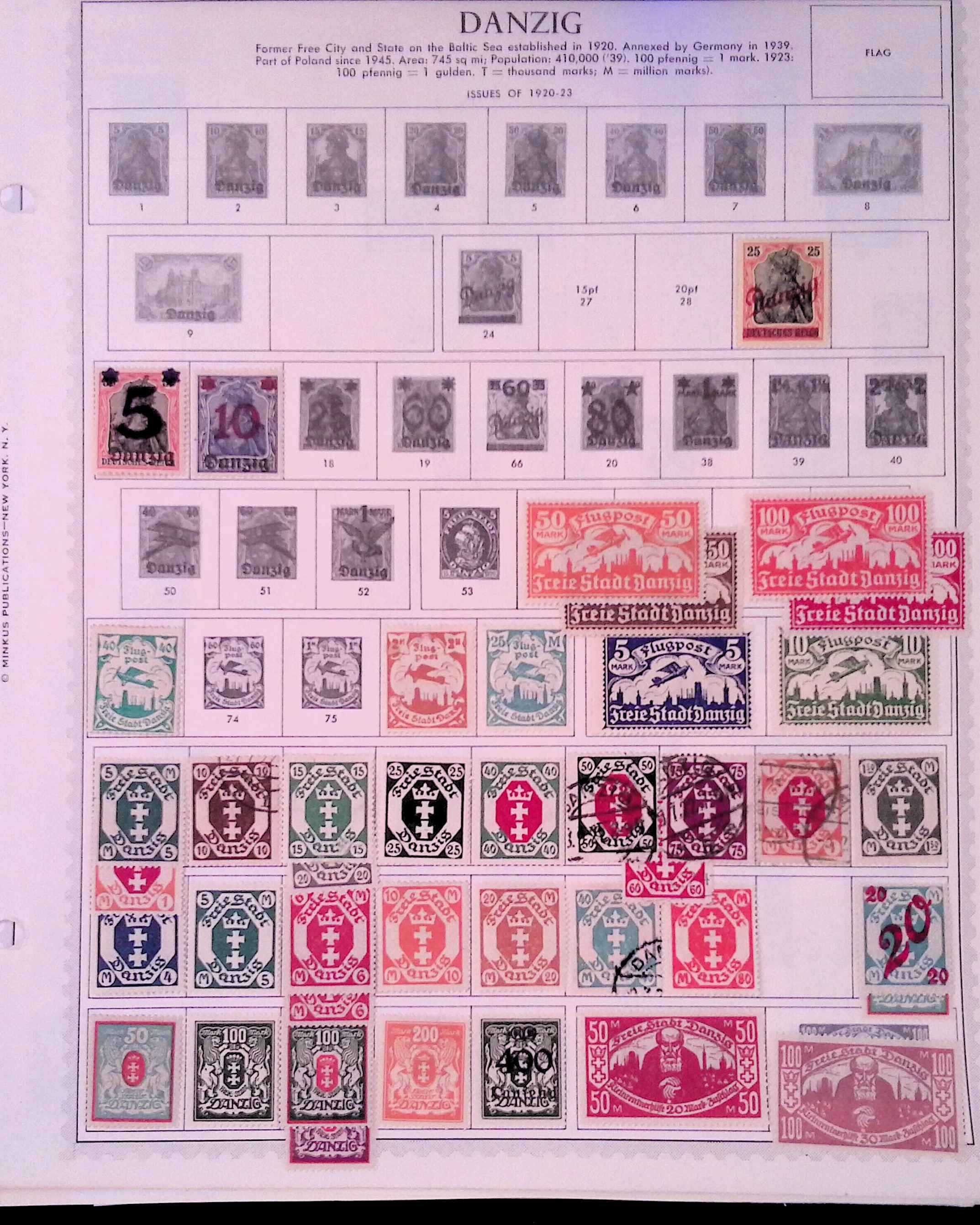 Danzig. Starter Collection Lot made from Scott Internationals and Minkus Globals up into the 2007s. Over 16 mostly filled pages - estimate $75-150. (Image1)