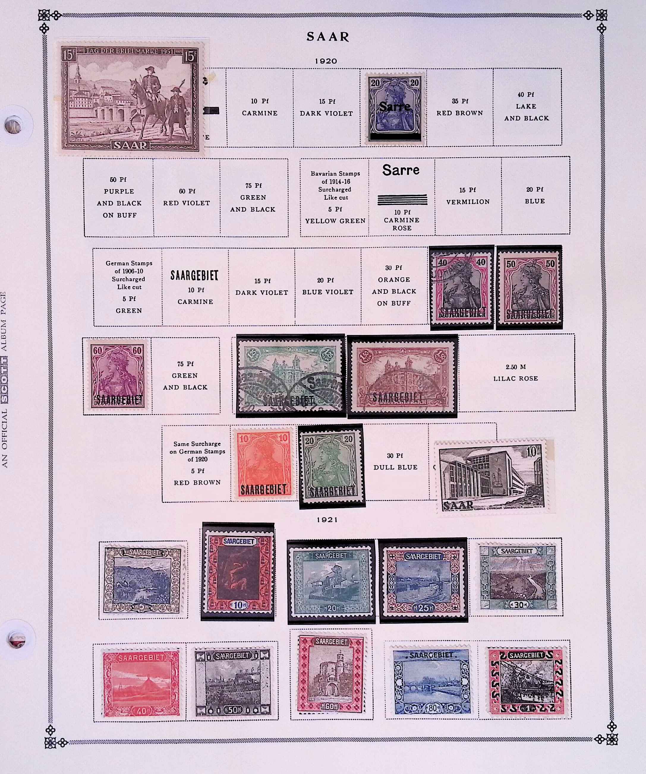 Saar. Starter Collection Lot made from Scott Internationals. Over 16 mostly filled pages - estimate $40-80. (Image1)
