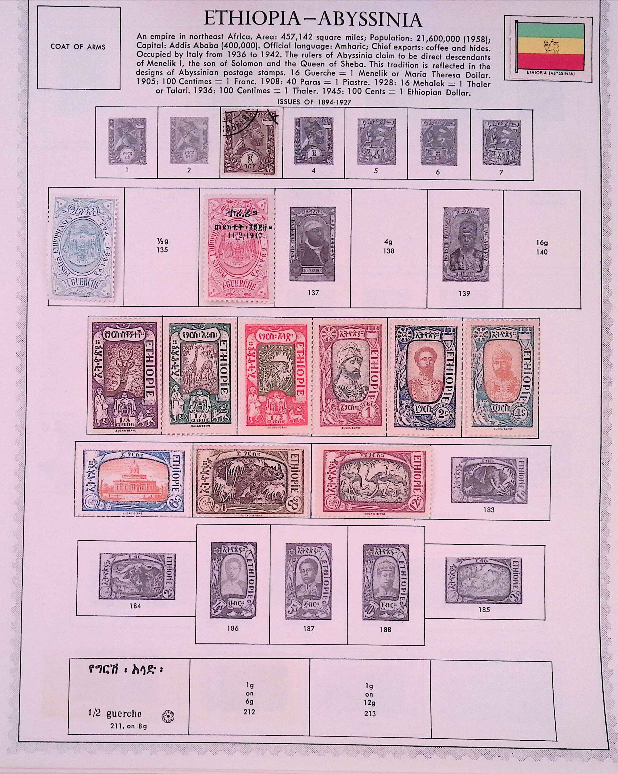 Ethiopia. Starter Collection Lot made from Scott Internationals and Minkus Globals up into the 2007s. Over 12 mostly filled pages - estimate $30-60. (Image1)