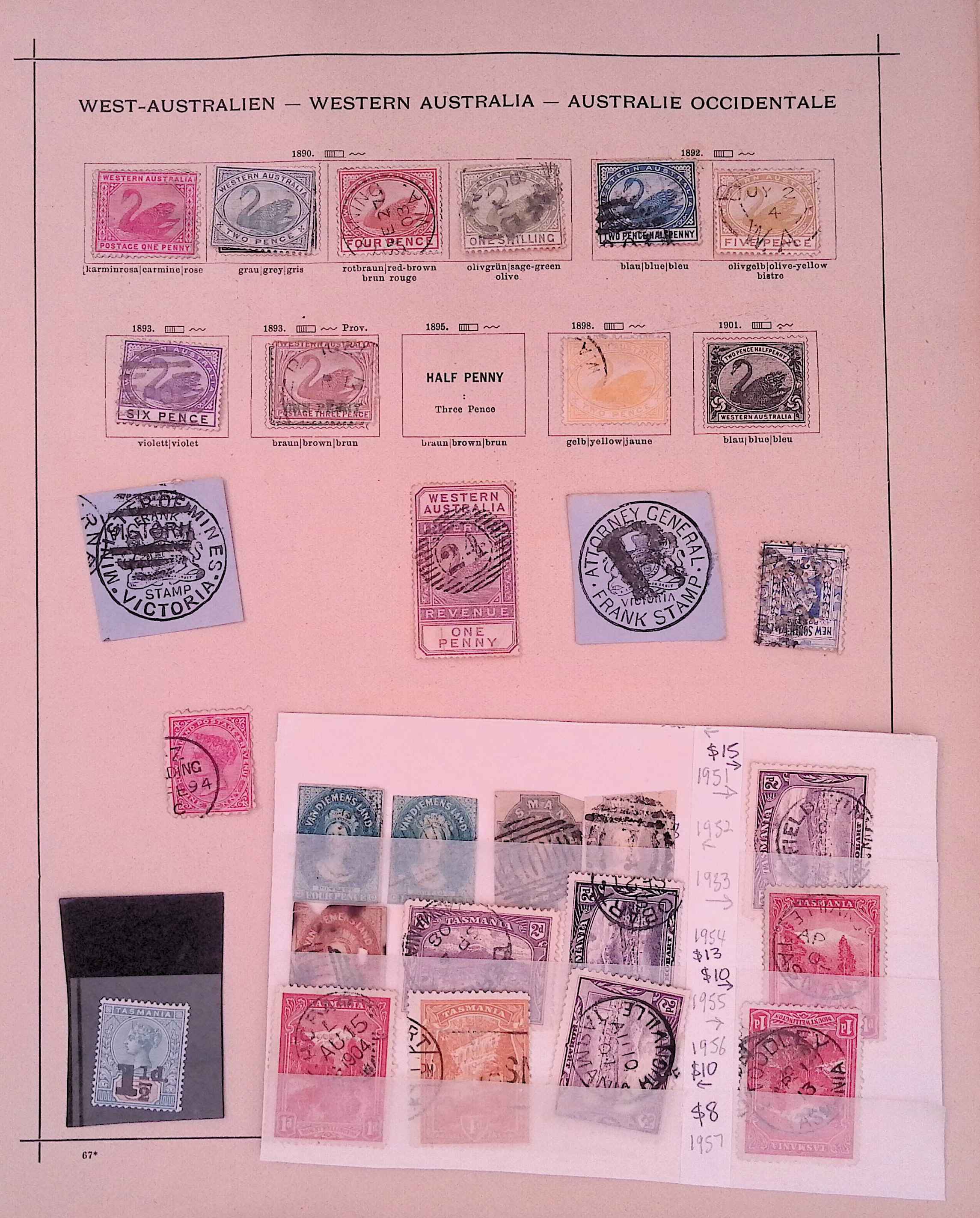 Australian States and Related, Western Australia, Tasmanis, Queensland, Victoria, South Australia, NW Pacific Islands, Autralizan Anarctic Territory, Christmas Islands. Starter Collection Lot made from Scott Internationals and Minkus Globals up into the 2007s. Over 60 mostly filled pages, scattered better catalog value items with cat values over $100 total $2000+ in CV - estimate $200-300. (Image1)