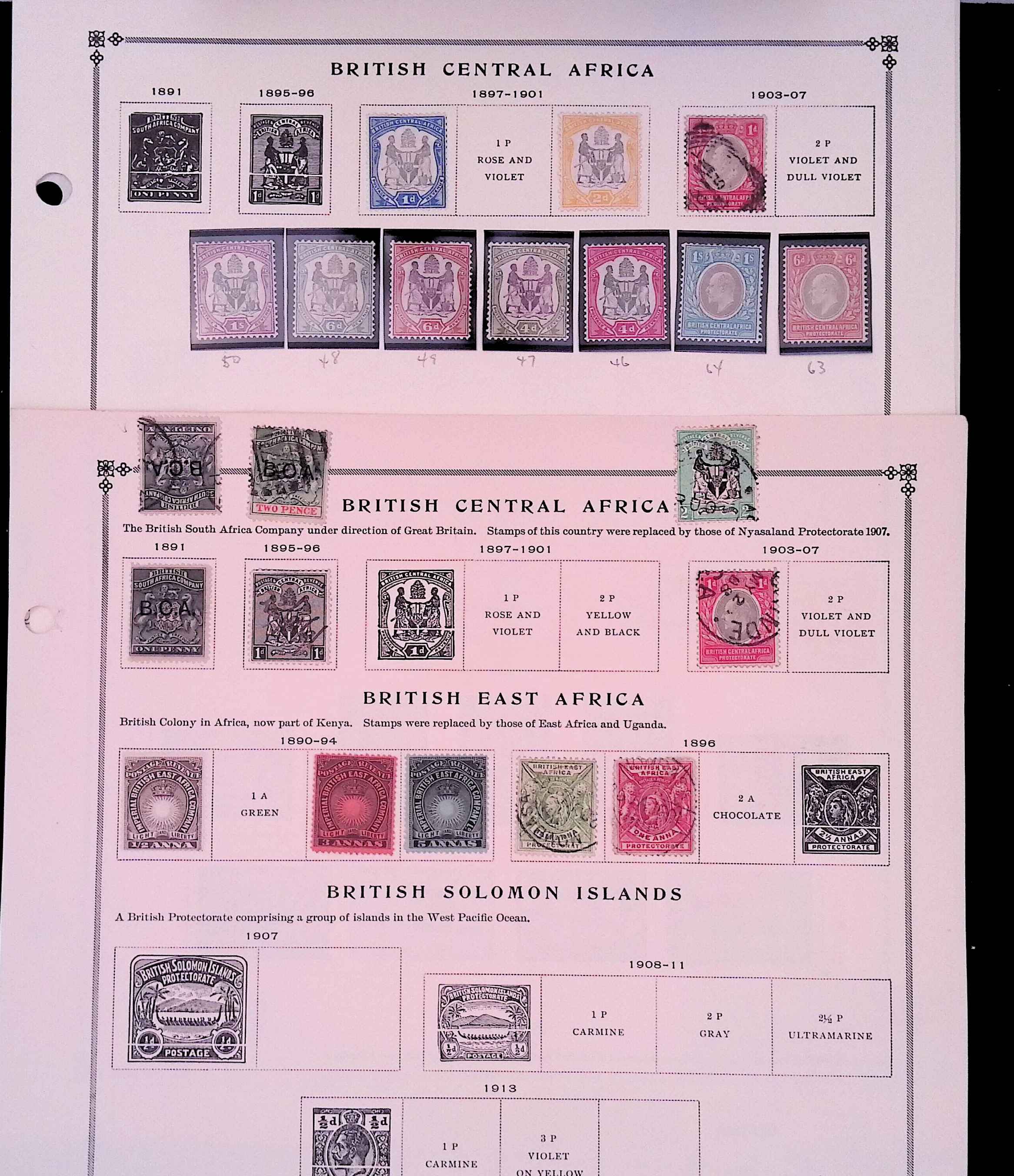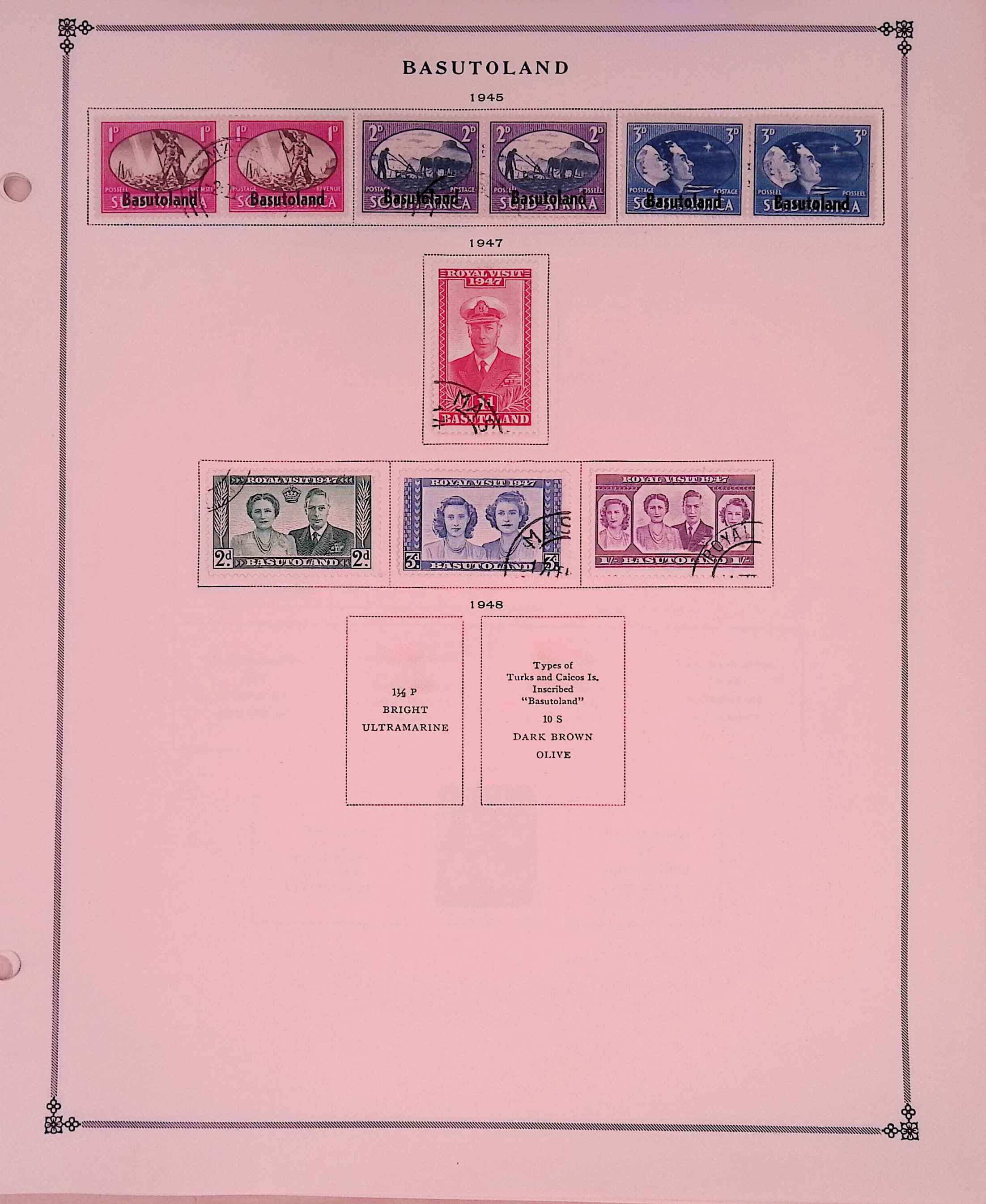British East, Central Africa, Bechuanaland, Botswana, Bophuthatswana, Gambia, Basutoland, Lesotho. Starter Collection Lot made from Scott Internationals and Minkus Globals. Over 28 mostly filled pages - estimate $60-120. (Image1)