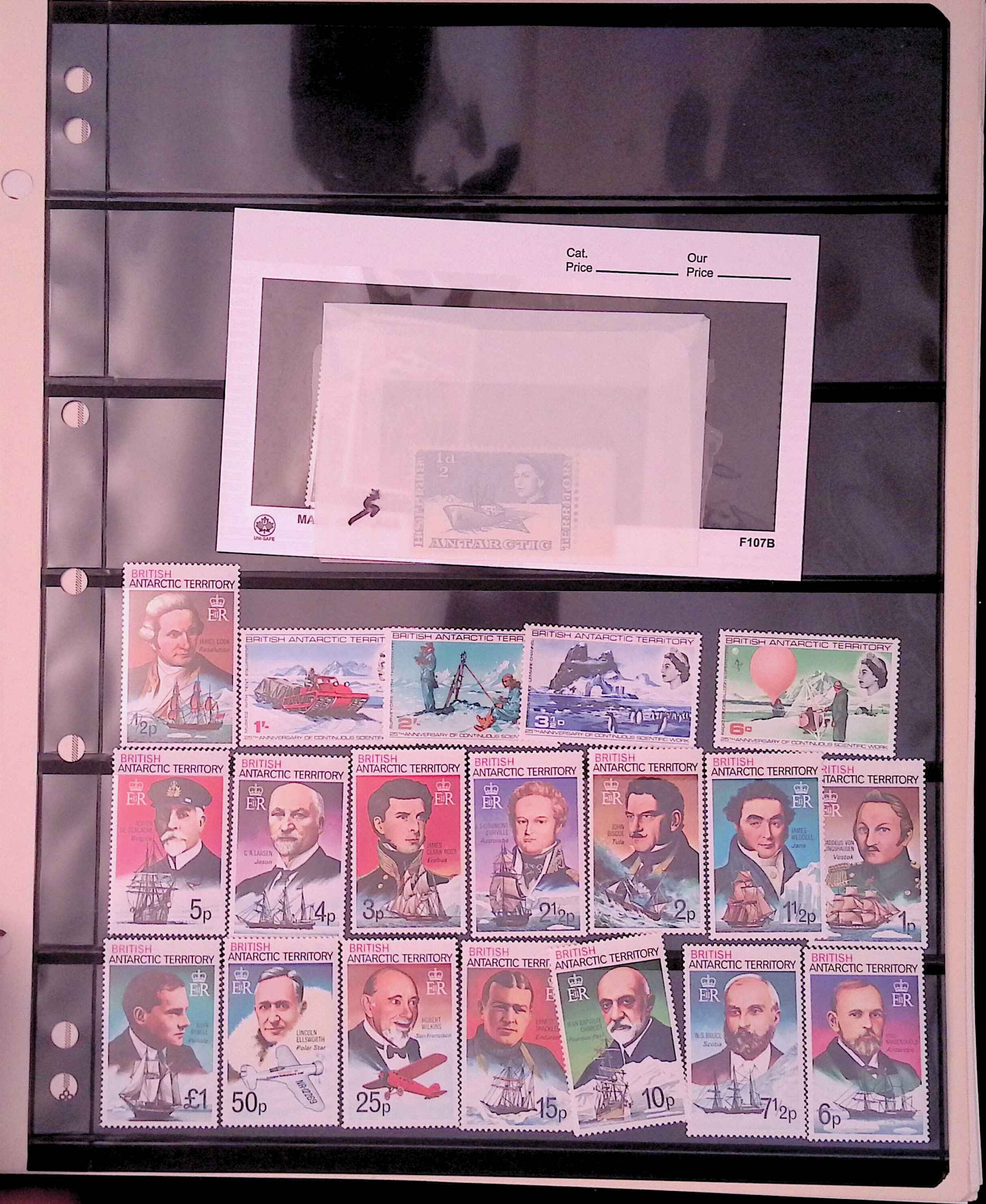 Antarctic Territory, British Honduras, Indian Ocean Territory, Solomon Islands, Cayman Islands, Aitutaki, Cook and Cocos Islands. Starter Collection Lot made from Scott Internationals and Minkus Globals. Over 20 mostly filled pages - estimate $50-100. (Image1)