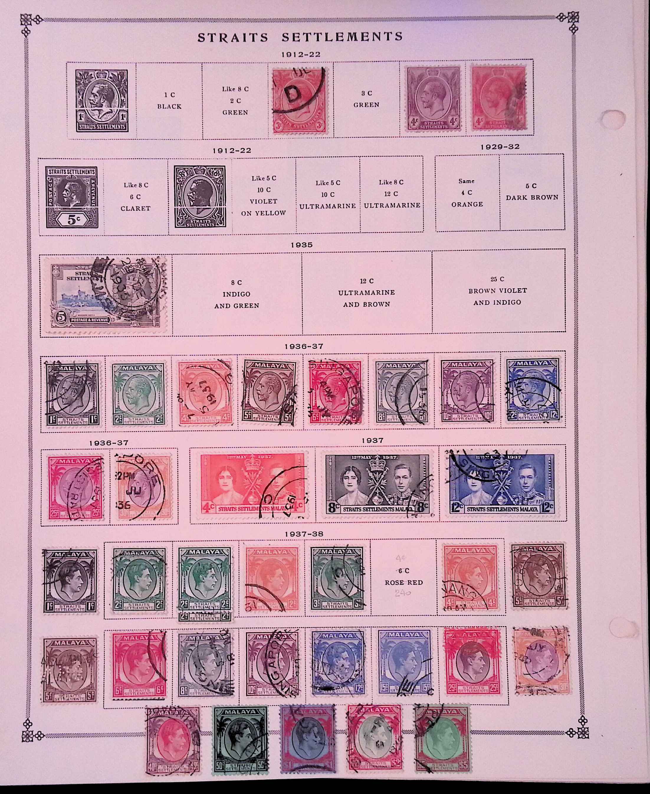 Malaya and Federated States, Straits Settlements, Singapore. Starter Collection Lot made from Scott Internationals and Minkus Globals. Over 40 mostly filled pages - estimate $100-200. (Image1)
