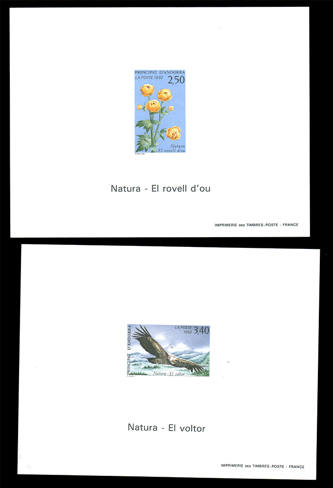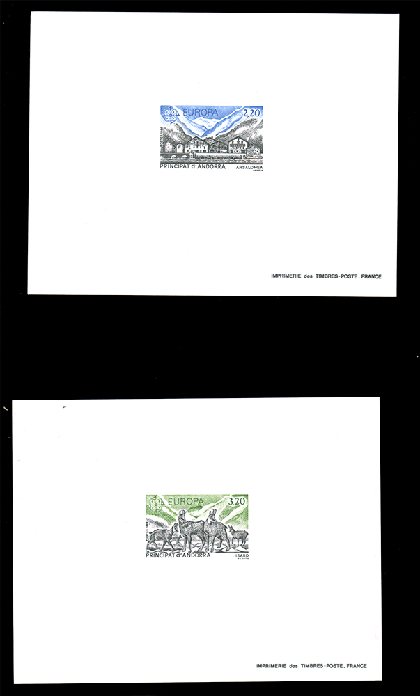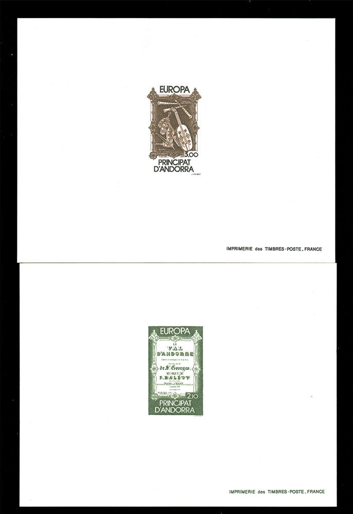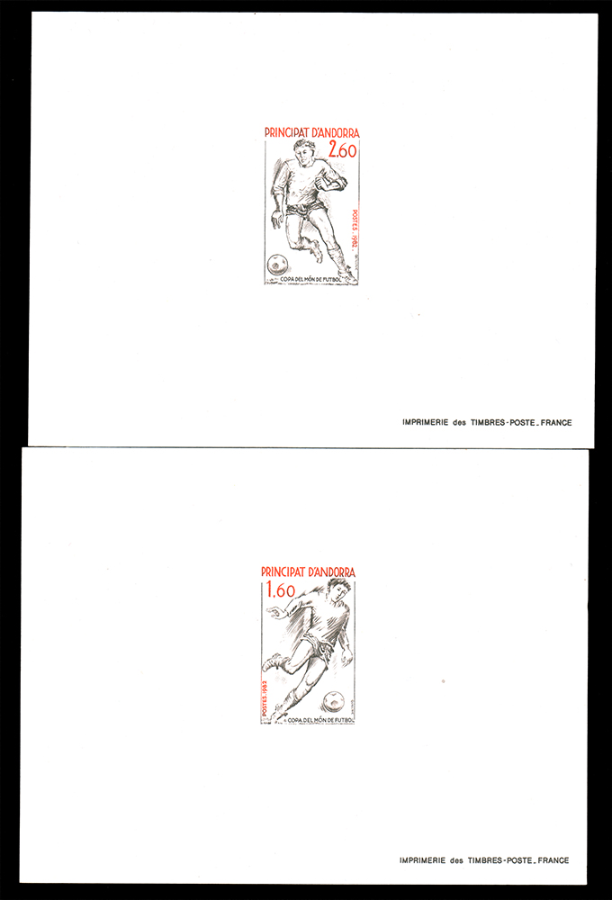 FRENCH ANDORRA, 1982, SOCCER DE LUXE PROOF SET, #296P-297P, fresh and very fine, cat. Maury #315-316 @ €130.00. Donated by Paradise Valley Stamp Company. (Image1)