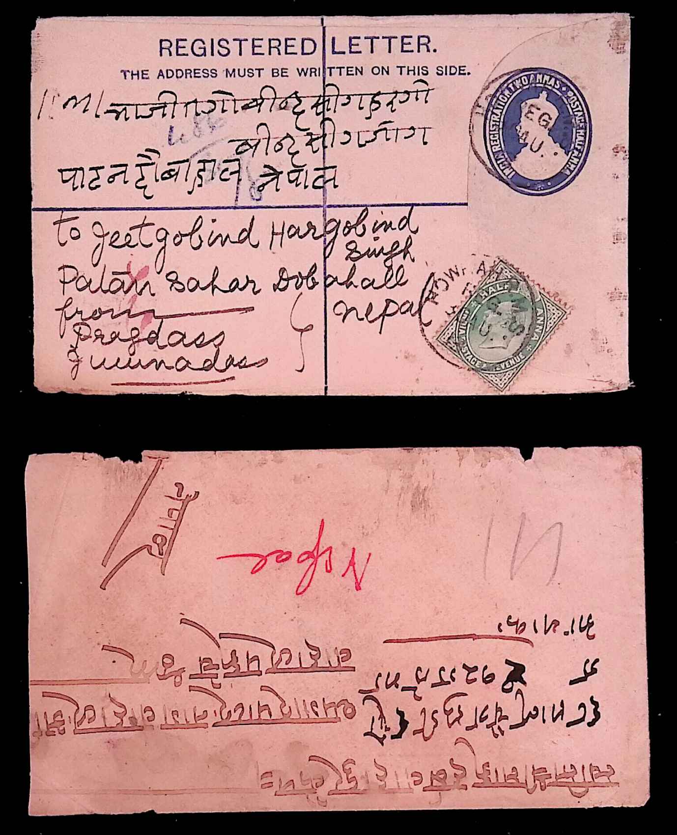 India to Nepal, 1912 and 1913 cover and postal stationery from India to Nepal. Estimate $80. (Image1)