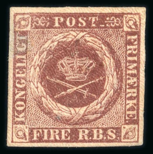 1870-1905, bi-coloured skilling and øre issues. A magnificent exhibition collection mounted on 80 pages, with excellent information and highly specialized studies of frame groups, matrix plate flaws, pearl flaws (large and small), oval flaws, cancellations, and much more. The better items include entire 1874 to Danish West Indies bearing 3sk, 4sk, 48sk; 2sk line perforated unused (defective); 2sk Prussian blue on local letter; 4sk print 12 inverted frame on cover; 50 øre print 1a; 1875 entire to France bearing 8 and 25 øre; attractive uprated stationary cards; 5 øre single on printed matter to Norway. A very comprehensive collection that lends itself to further development for exhibiting into the higher echelons of award. We note some minor defects with the material throughout and also with the better items; with 5 certificates. (Image)