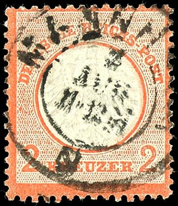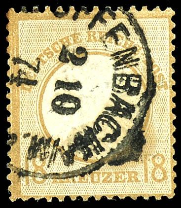 18 Kreuzer great breast shield with single circle postmark "OFFENBACH 2 10 74", superb item with only little lifted double signature Hennies BPP, Michel 2.800.- (28) (Image 1)(Image)