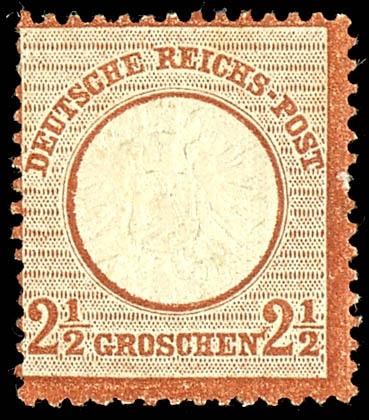 2 1/2 Groschen großer Schild, rötlichbraun, ungebraucht mit Originalgummierung, bis auf einen hellen Zahn in tadelloser Erhaltung, unsigniert, Fotoattest Hansmichael Krug BPP "Ungebraucht eine seltene Marke.", Mi. 2.600.-