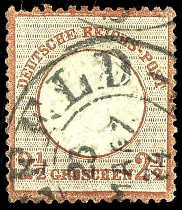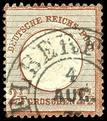 2 1/2 Groschen large shield, red-brown, cancelled by horseshoe cancel "ELBERFELD 4 August 73" (Spalink 12-4), very fine, unsigned, photo expertize Hansmichael Krug BPP "in perfect condition. ", Michel 650.- (21b) Certificate(Image 1)(Image)