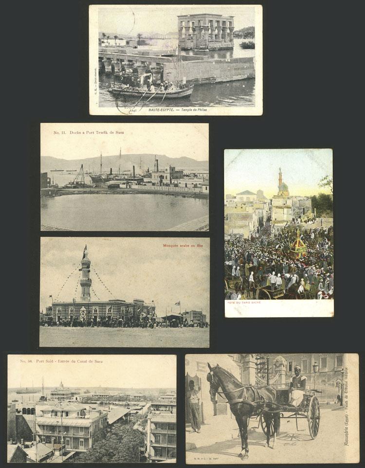 Circa 1905, 26 old PCs with very good views of Port Said, Cairo, Suez, etc. Some with age stains (they were stored in an attic for over 100 years!), in general very nice and of fine quality. Lot with great potential, good opportunity! ATTENTION: please view all the photos of the lot, because all the cards have been scanned. (Image)