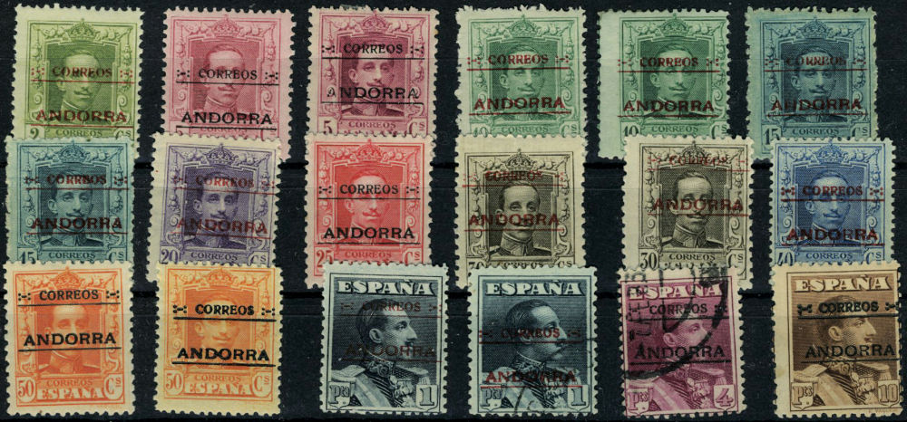 N° 1/12, la série avec quelques doubles, dentelures variées (1 et 4 Ptas OBL) - Photo Web (Image)