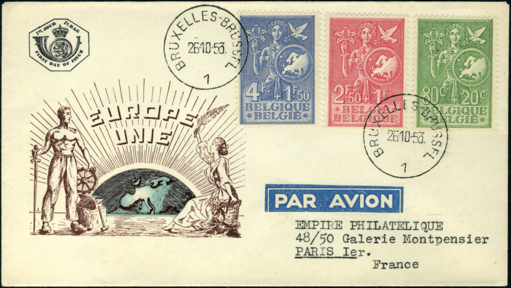 N° 927/9, la série EUROPE, OBL 26/10/53 sur enveloppe 1er Jour, TB - Photo Web (Image)