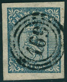 N° 1, 4 s bleu, 3ex obl. différentes, superbe (Image)