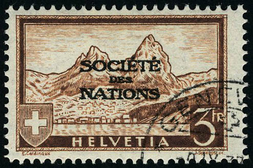 N° 60A, 61A, 3f et 10f Société des Nations, T.B. (Image)