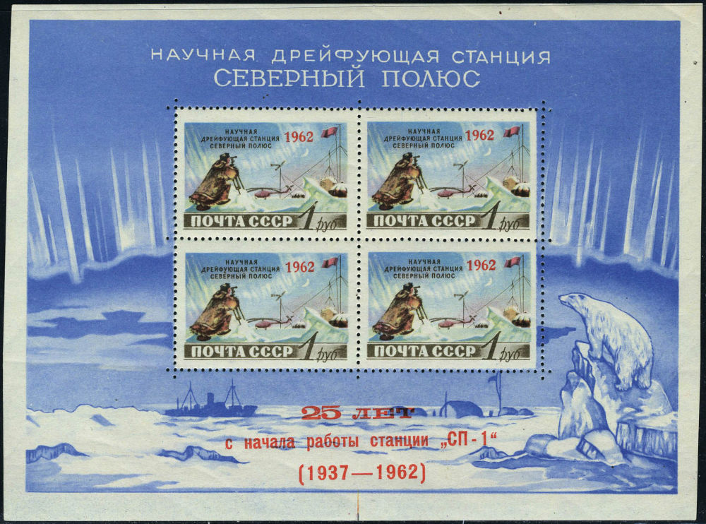 N° 31, bloc 25è anniversaire de la 1ère station dérivante au Pôle Nord, T.B. (Image)