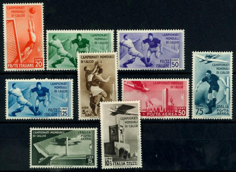 20 cent 10 liras Football World Cup, 9 values complete unused. (479/87)