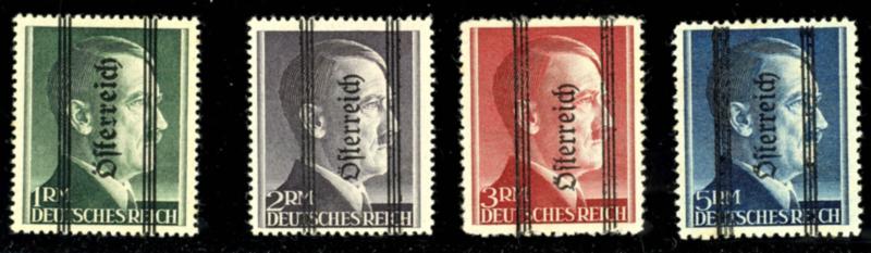 1-5 RM. Grazer Aufdruck, Nr. 693 in Typ I (gummimatte Stelle in der l.o. Ecke), alle anderen in Typ II, signiert, Mi. 500.- (Image 1)(Image)