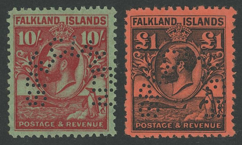 1929-37 KGV Whale & Penguin ½d to £1 SET with Horseshoe 'SPECIMEN' punctures SG 116s-126s, lightly mounted including the 10/- & £1 (both well-centred) or with small hinge remainders, Cat £1000.
