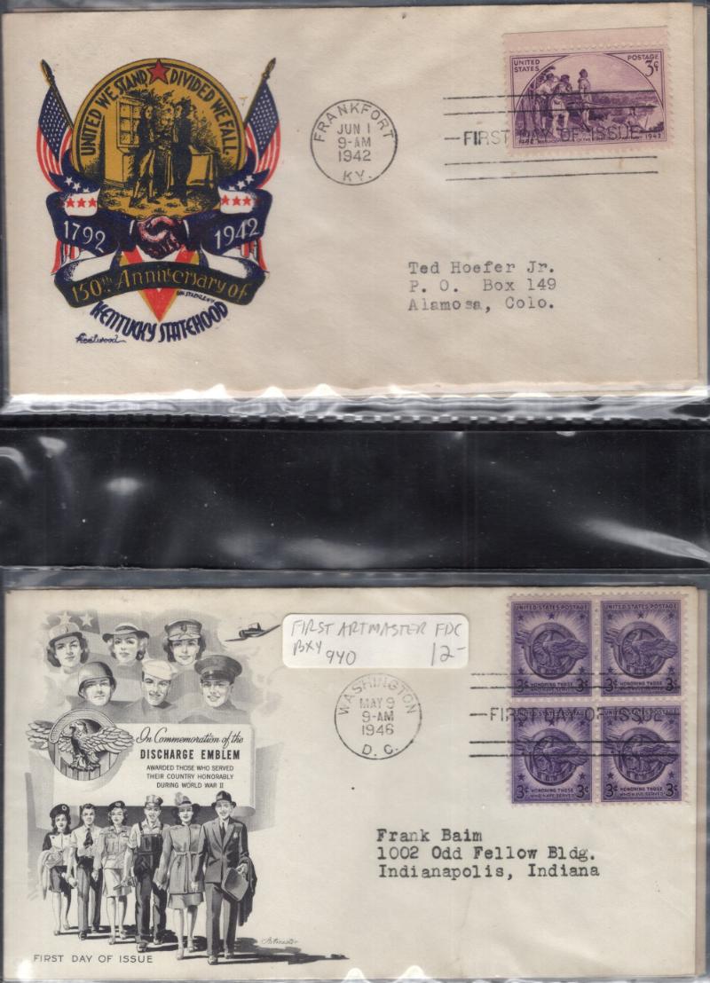 1ST CACHETS abt (350+) per owner in (2) binders in date order 1942-96, noted FW, AM, Marq, Bazaar, Spectrum, many local clubs; mostly UA, few toning but gen F-VF (Image)