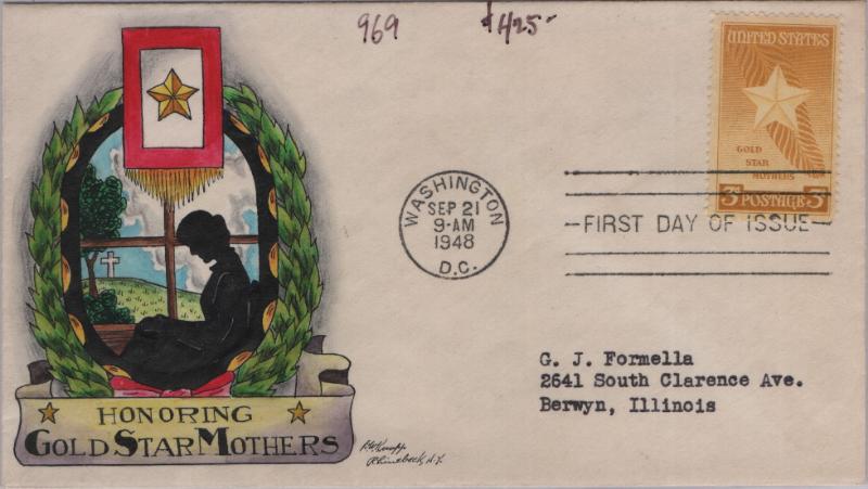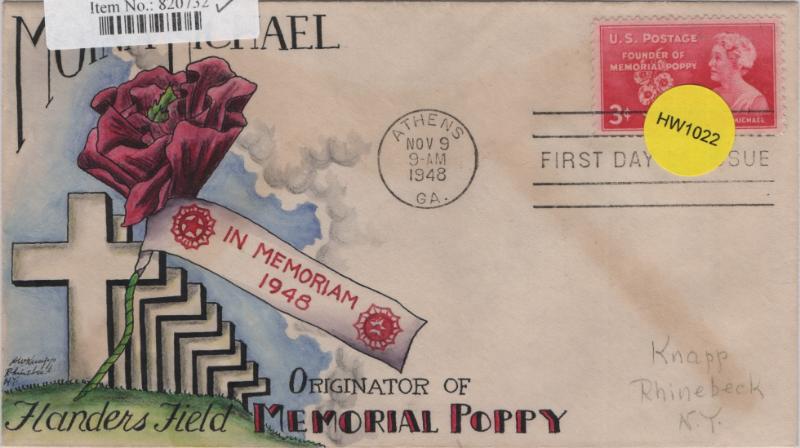 KNAPP #977 3¢ Memorial Poppy, self-addr in pencil, flap mark, F-VF (Image)