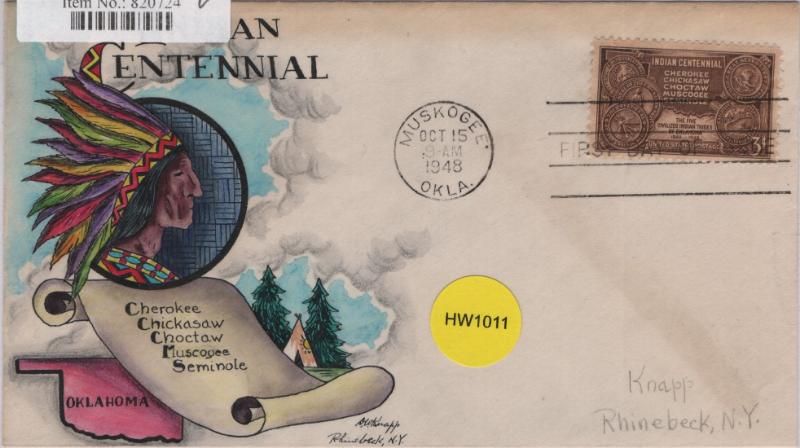 KNAPP #972 3¢ Indian Centennial, self-addr in pencil, light flap mark & top edge toning, F-VF (Image)