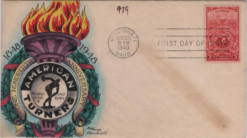 KNAPP #979 3¢ American Turners, UA, flap mark, F-VF (Image)