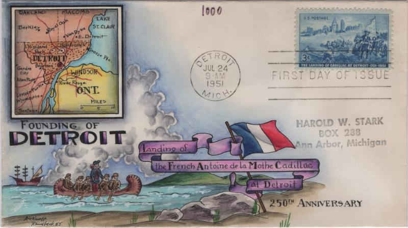 KNAPP #1000 Detroit, neatly addr, corner glue marks on back, F-VF+ (Image)
