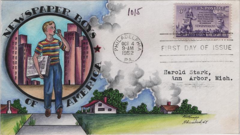 KNAPP #1015 Newspaper Boys, neatly addr, corner glue marks on back, F-VF+ (Image)
