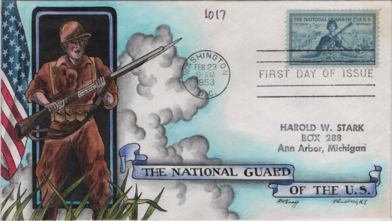 KNAPP #1017 National Guard, neatly addr, corner glue marks on back, F-VF+ (Image)