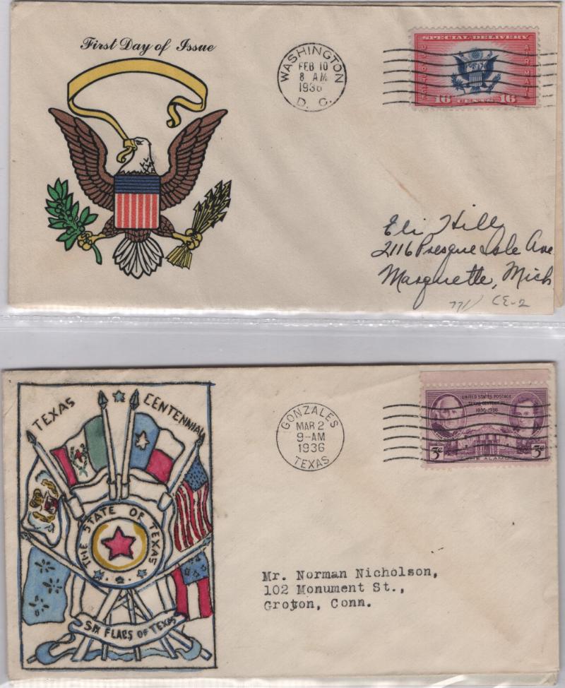 Group (44) diff FDC hand drawn, hand painted, hand colored, etc, all from the period 1930-50, some nice artists incl Gundel, Edmiston, Wright & others noted in the field, gen F-VF (Image)