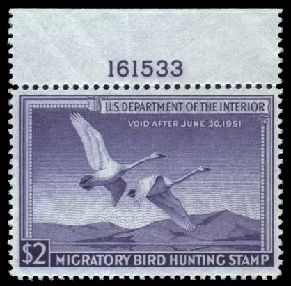 RW17, 1950 Trumpeter Swan, Top PNS no. 161533, bright white paper, VF NH Cat($90) (Image)