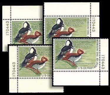 RW35, 1968 Hooded Mergansers, (4) PNS's no. 170443, all sheet corners, F-VF/VF all NH Cat($280) (Image)