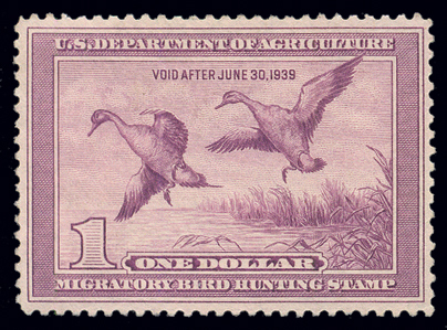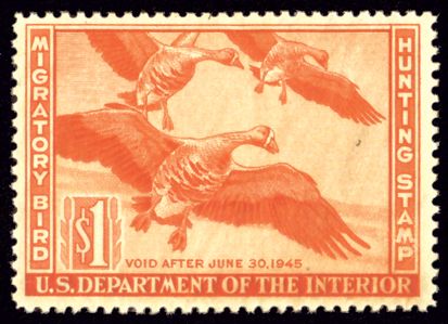 RW11,1944 White-fronted Geese, exceptionally well centered, which is incredibly difficult on this early issue. Blazing color! XF NH, small natural gum skips Cat($125) (Image)