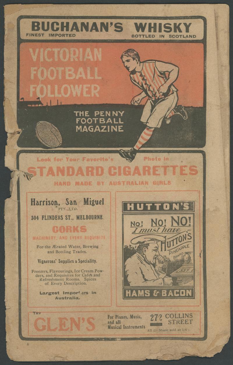 Record 'Victorian Football Follower' Vol.9 No.24 for September 18 1908 Semi-Final Carlton v St Kilda. Some edge and spine faults, though extremely rare forerunner to the 'Football Record'. (Image1)