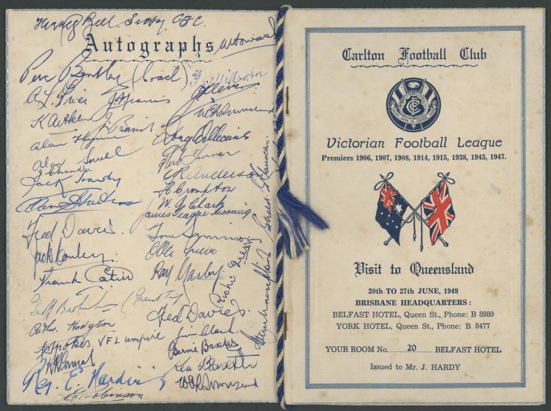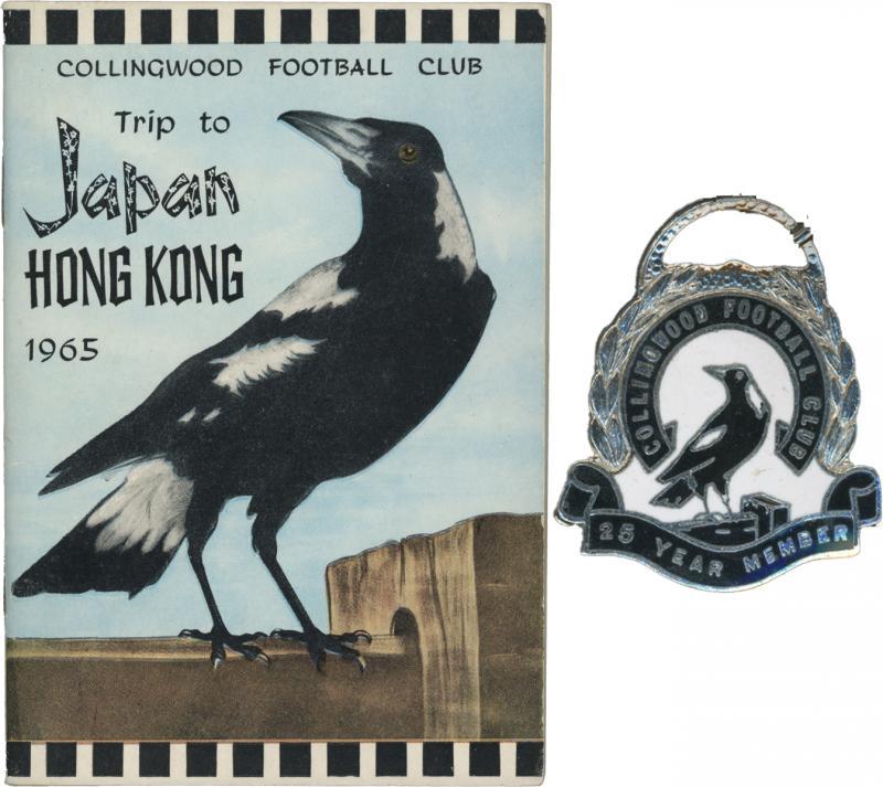 COLLINGWOOD: Balance of collection including 'Collingwood Football Club Trip to Japan-Hong Kong 1965'; book 'Rose Boys' signed by Bob & Kevin Rose; '25 Year Member' badge; signed cards & covers (22) noted Nick Maxwell, Lou Richards & Thorold Merrett; cuff-links, tie pins (7), medallions (2) & key rings (27); ephemera & game day tickets (100+), mainly Fine/Very Fine.