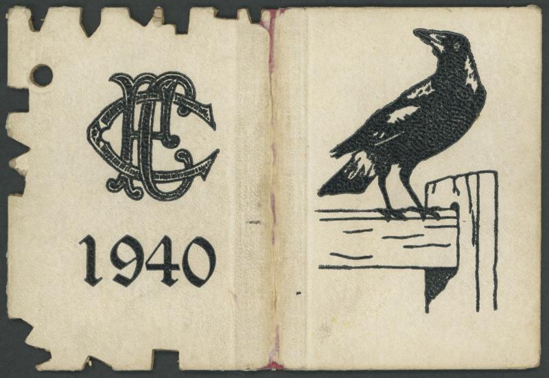 COLLINGWOOD: 1940 Member's Season Ticket, with Fixture List & hole punched for each game attended. Fair/Fine condition. (Image1)