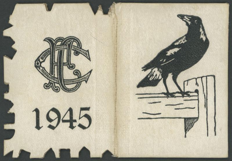 COLLINGWOOD: 1945 Member's Season Ticket, with Fixture List & hole punched for each game attended. Fair/Fine condition. (Image1)