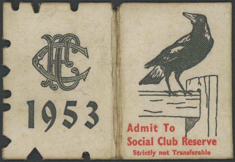 COLLINGWOOD: 1953 Member's Season Ticket, with Fixture List & hole punched for each game attended, Fair condition. [Premiership Year]. (Image1)
